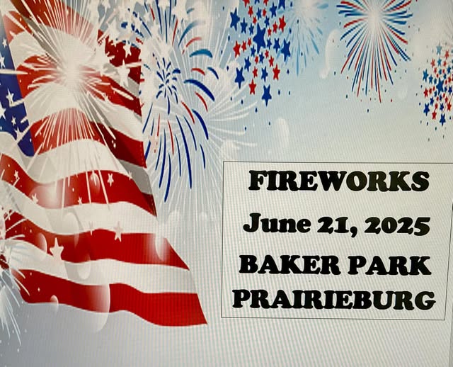 June 21 @ 8:00 pm - 10:00 pm Prairieburg Fireworks Baker Park 151 Boulder St, Prairieburg, IA, United States