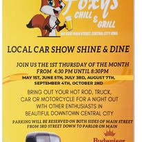 June 5 @ 4:30 pm - 8:30 pm Foxy’s Shine & Dine Foxy's Chill & Grill 347 E Main St, Central City, IA, United States